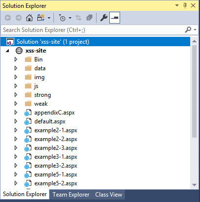The “xss-site” folder is actually a web site that you can access with Visual Studio Community 2017 (or any other current version of Visual Studio).